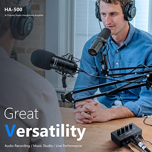 Neewer Amplificatore per Cuffie Amplificatore Audio Stereo a 4 Canali, Splitter per Cuffie Compatto con Alimentazione DC 5V per Rinforzo del Suono, Studio, Palcoscenico, Coro, Registrazione Personale