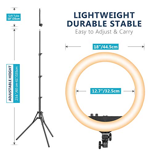 Neewer 18” Luce LED Anulare con Stativo & 2,4G Telecomando, 55W 3200-5500K Luce per Truccatura con Tubo Flessibile Supporto Clip per Smartphone Testa a Sfera per Vlog Selfie Video, Ricarica a USB