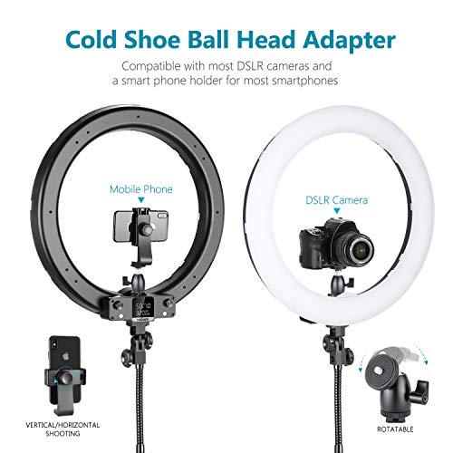 LUCE LED ANULARE: Si tratta di una luce dimmerabile larga di 48cm con 240 bulbi LED SMD dall'intensità ampia tra 0 e 100%. Adotta il design speciale LED SMD. È leggera e portatile. È operata da corrente continua e subisce bassa perdita di potenza.