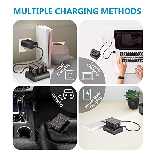 PIÙ BATTERIA, PIÙ FOTO: Triplez the Autonomia della tua fotocamera con un pacchetto di backup completo che include un pacchetto di 3 batterie di ricambio e un caricabatterie Micro USB/Type-C a 3 canali per mantenere i tuoi dispositivi vuoti in carica;