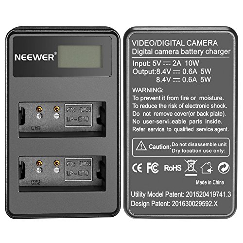 Neewer Caricabatterie Doppio a USB con Display LED 5V/2A Input per Batteria Ricaricabile Canon LP-E10, Adatto a Fotocamere Digitali Canon EOS Rebel T3 T5 T6 Kiss X50 Kiss X70 EOS 1100D EOS 1200D EOS 1300D