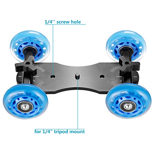 Neewer Carrello Dolly da Tavolo Silenzioso Design Skater con Piastra di Montaggio in Lega di Alluminio Ruote Girevoli in Silicone Capacità di Carico 10KG per Fotocamere DSLR Videocamere (Nero/Blu)