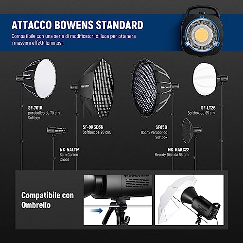 NEEWER CB60B 70W Luce Video LED con Controllo 2,4G/APP COB Bicolore Illuminazione Video Continua Attacco Bowens 2700K-6500K 34000Lux@1m/Modalità CCT/CRI97+/12 Scene per Studio Registrazione Fotografia
