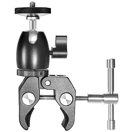 Neewer Combinazione di Testa a Sfera Orientabile e Morsa in Lega di Alluminio con Filettatura 1/4”e Articolazione a 360° Massima Apertura di Morsa 6cm, per LCD/DV Monitor/Luci LED