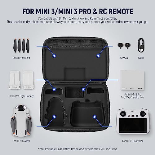 NEEWER Custodia per Mini 3 Pro Compatibile con Drone DJI Mini 3/Mini 3 Pro e Controller RC(Non per RC-N1), Custodia da Trasporto Rigida Resistente all'Acqua Antiurto Borsa a Tracolla con Tasca, PB001