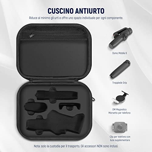 【Per Gimbal Osmo Mobile 6】 Compatibile esclusivamente con DJI Osmo Mobile 6, questa robusta custodia rigida consente di riporre, trasportare e proteggere senza sforzo il gimbal Osmo Mobile 6 in viaggio e di facile organizzare gli accessori OM 6.