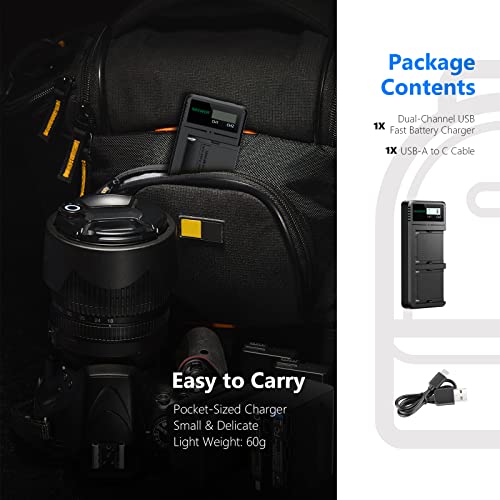 [Comoda Trasportabilità] È facile conservare questo caricabatterie piccolo in una borsa o una custodia per fotocamera, che è ideale per viaggio o altre attività al chiuso o in esterni.