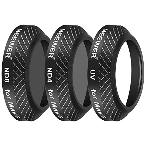 Neewer Kit di 3 Filtri per Drone Quadricottero DJI Mavic Pro, Inclusi: Filtro UV, ND4 & ND8, in Vetro Ottico Multi-rivestito con Telaio in Lega di Alluminio (Nero)