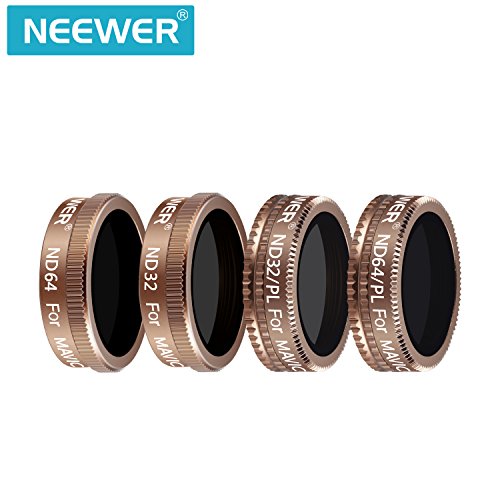 Neewer Kit di Filtri per DJI Mavic Air - 4pz, ND32, ND64, ND32/PL & ND64/PL, in Vetro Ottico Multi-rivestito Impermeabile con Telaio in Lega di Alluminio per Fotografia all'Aperto (Dorato)