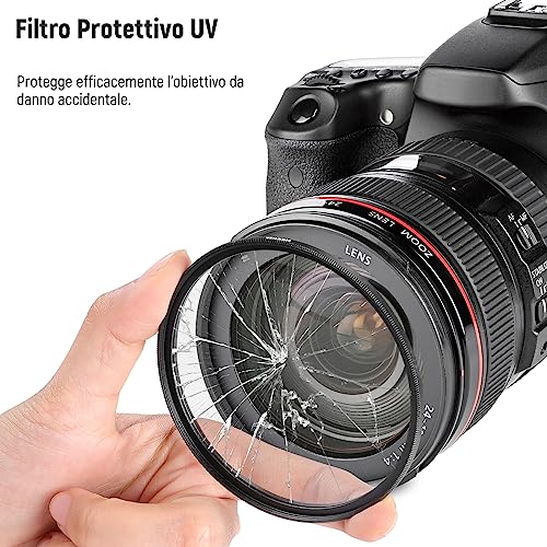 Materiale di Qualità Superiore】 Il vetro ottico HD offre una chiarezza impeccabile e un'elevata trasmittanza luminosa. La sottile cornice in lega di alluminio con zigrinature diritte è facile da installare ed evita la vignettatura sugli obiettivi grandangolari.