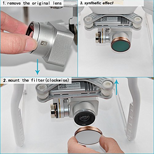 Attenzione: solo quando il filtro originale attaccato alla fotocamera DJI Phantom è rimosso, si può montare questi filtri.