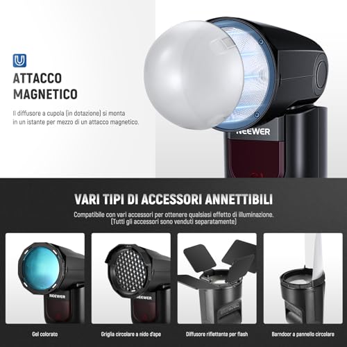 NEEWER Z1-N TTL Flash Speedlite a Testa Tonda per Nikon, Speedlight con Diffusore a Cupola Magnetica, 2,4G 1/8000s HSS, 10 Livelli di Lampada per Book Fotografici a LED, 480 Scatti a Piena Potenza