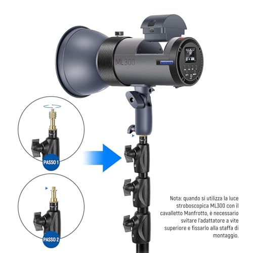 【Modalità supportate】 L'ML300 supporta le modalità manuale, multi, telecomando wireless a 2,4 GHz, S1 e S2. Compatibile con fotocamere hot shoe Canon, Nikon, Panasonic, Olympus, Pentax, Fujifilm e Sony, come Sony a9, a7, a7 II, a7 III, a7R III, a7R II, a7S II, a6000, a6300 e a6500. (Non compatibile con Canon EOS 250D/1500D/2000D/3000D/4000D e Rebel SL3/T7/T100.) Inoltre non supporta le modalità TTL e HSS