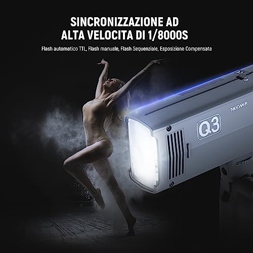 NEEWER Q3 Flash 200W 2,4G TTL (Versione 2) 1/8000s HSS GN58 Strobo Portatile Monoluce con Softbox Diffusore, 3200mAh Batteria a Litio, 500 Lampi a Potenza Piena, Ricarica 0,01-1,8s
