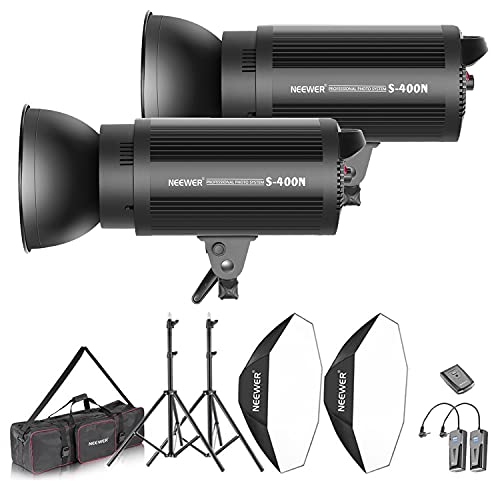 Neewer Kit d'Illuminazione 800W Strobo Flash & Softbox: (2) 400W Flash Monoluce (S-400N) (2)Riflettore con Attacco Bowens (2)Cavalletto (2) Softbox (2)Lampadina (1) RT-16 Trigger (1)Borsa