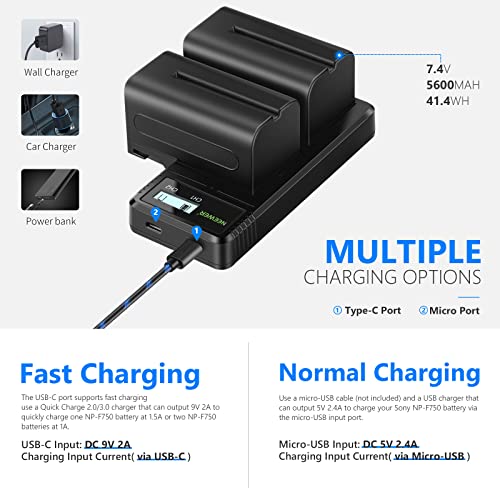 [2 Opzioni di Alimentazione] Connettere l'adattatore d'alimentazione AC o usare le 2 batterie NP-F750 in dotazione quando si sta in movimento. Continuate con le riprese e non è necessario preoccuparsi della scarsità di elettricità.