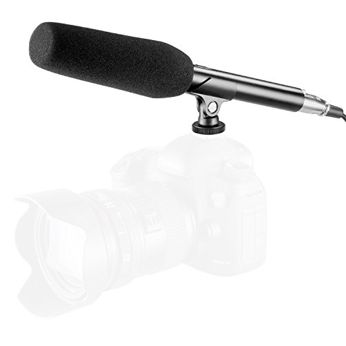 Neewer 26,6cm Microfono a Condensatore Esterno con Paravento in Spugna, Cavo XLR, Connettore Input 3,5mm Kit per Videocamere e Reflex Digitali Canon Nikon