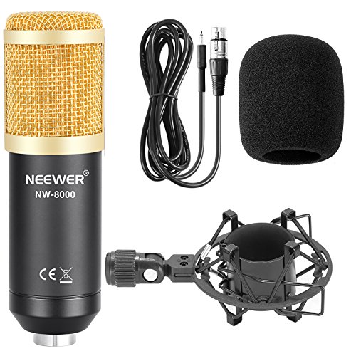 Neewer Microfono a Condensatore NW-8000 Studio Trasmissioni Registrazioni: Microfono a Condensatore Asta Sospensione a Forbici con Supporto Anti-vibrazione Filtro Pop & Serratura da Tavolo