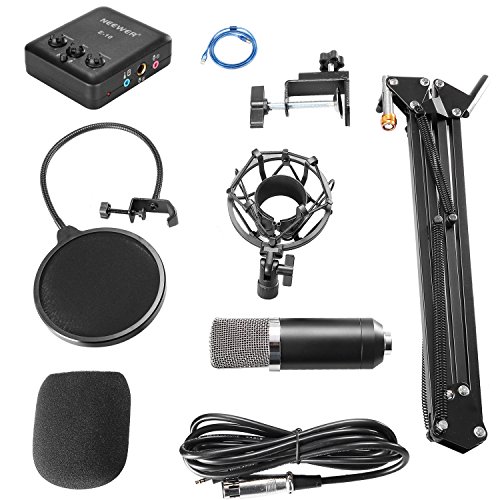Neewer Microfono a Condensatore Nero Professionale, Regolabile Stand per Microfono Asta di Sospensione Braccio a Forbici, Supporto Anti-vibrazione & Nera Scheda Audio a USB senza Driver con Volume di Mescolamento