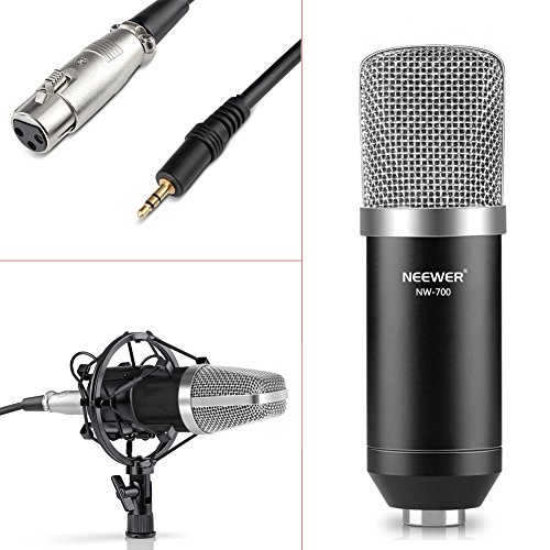 Neewer Microfono a Condensatore Nero Professionale, Regolabile Stand per Microfono Asta di Sospensione Braccio a Forbici, Supporto Anti-vibrazione & Scheda Audio a USB senza Driver con Volume di Mescolamento per Telecomunicazioni in Studio, Canti, Registrazioni