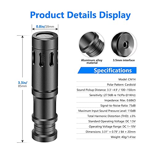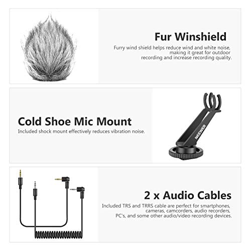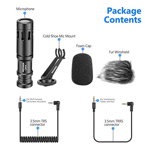 Neewer CM14 Microfono per telefono,Mini microfono con supporto per microfono, cuffia antivento,cavi audio compatibili con iPhone/Android/DSLR Camera/Camcorder(adattatore per iPhone non incluso)