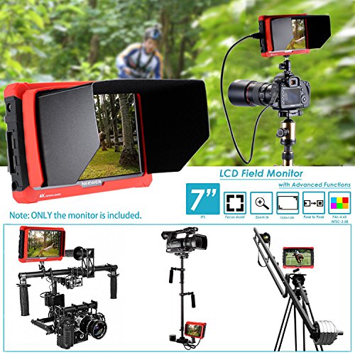 Regolabile rapporto display 16:10 o 4:3. Dispone di ingresso HDMI e uscita Loop. Quando il segnale HDMI è trasferito all'A7S, può anche essere trasmesso via l'output Loop agli altri monitor o dispositivi. Il monitor funziona con steadycam, DSLR rig, kit di videocamera e stabilizzatore portatile.