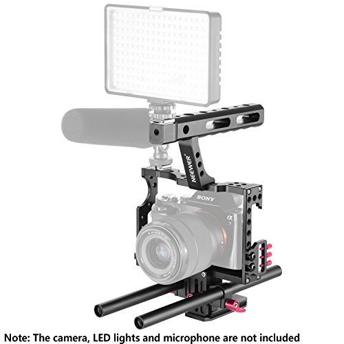 Neewer Film Movie Making Camera video Gabbia Kit con maniglia per Sony A7 A7S A7SII A7R A7RII A7II A6000 A6300 A6500 Panasonic GH4 GH3 Telecamere, Segue Fuoco, Matte Box, Microfono,LED,Monitor,Flash