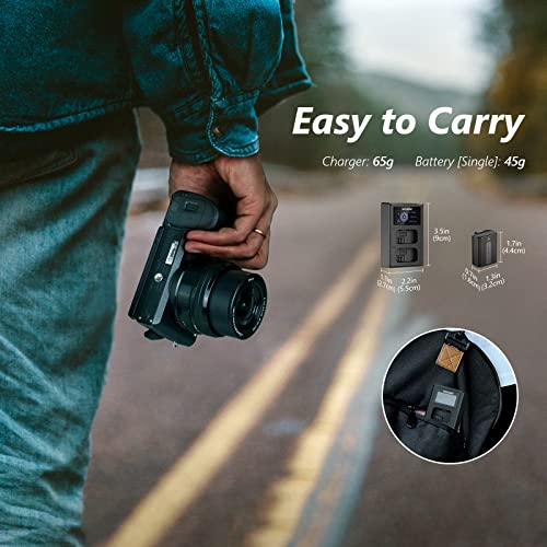 【Sufficienza della batteria】 Vuoi avere più batteria per le tue riprese all'aperto? Allora questo set di caricabatterie sostitutivo NP-FW50 è per te. Due batterie ricaricabili da 1100 mAh forniscono una potenza della batteria duratura per scattare più foto e video.