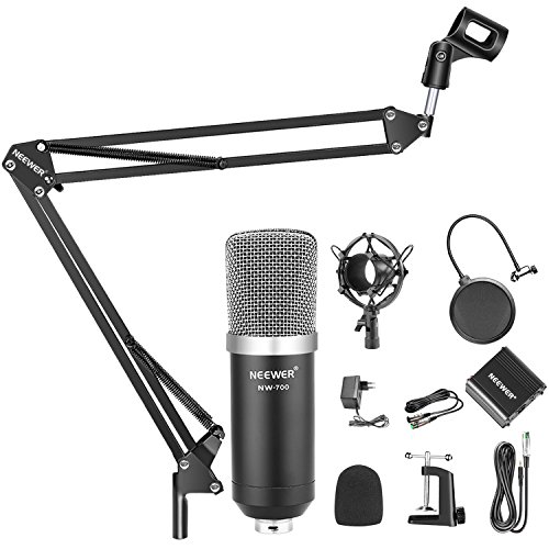 Neewer NW-700 Microfono a Condensatore & NW-35 Stand Asta di Sospensione Braccio a Forbici con Cavo XLR Incorporato e Serratura da Tavolo & Alimentazione 48V Phantom con Adattatore