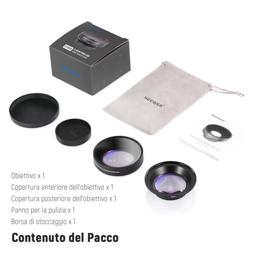 NEEWER 55mm Obiettivo Fisheye e Macro 0.43X HD 2 in 1, Lente Grandangolare con Lunghezza Focale 18mm Compatibile con Canon EOS M5 M6 M50 Mark II R7 Sony ZV-E10 A6400 A7 IV Nikon D750 D850 D5600, LS-20