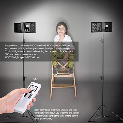2,4G TELECOMANDO WIRELESS: È progettato con 11 canali (1-10 e “88”). Mediante il telecomando, questa luce LED o multiple luci LED T120 possono essere gestite nello stesso tempo, semplicemente impostando il numero di canale a “88”, tale da ottenere un lavoro più creativo.