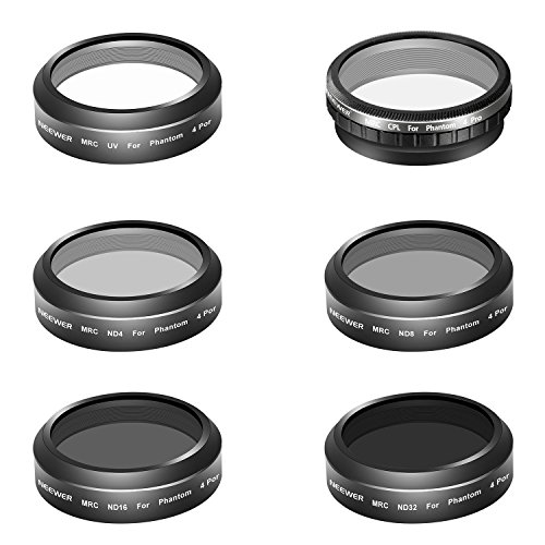 Neewer 6 pezzi kit filtro per DJI Phantom 4 Pro Quadcopter - Filtro UV, CPL, ND4, ND8, ND16, ND32, realizzato in vetro ottico e telaio in lega di alluminio e rivestimento impermeabile Mrc 16-layer (nero)