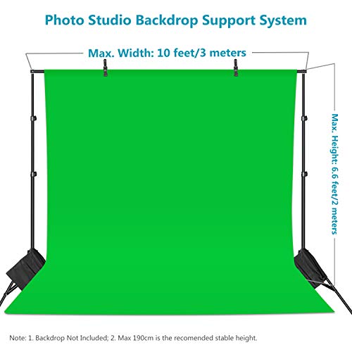 Neewer Photo Studio Regolabile 10ft/3m Larga Barra Trasversale 6.6ft/2m Alto Sfondo Regolabile Staffa, Sistema di Supporto con 2 Morsetti di Sfondo, 2 Sacchi di Sabbia e Borsa da Trasporto