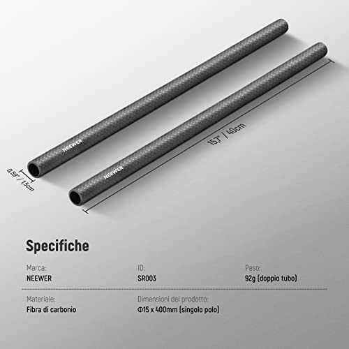 NEEWER 15mm Prolunghe in Fibra di Carbonio 40cm compatibile con SmallRig Compatibile con Tilta Sistema Supporto 15mm Rod Rail, DSLR Shoulder Rig, Camera Stabilizer Cage, Matte Box, Base Plate, SR003