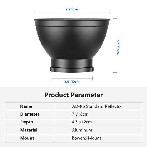 NEEWER Riflettore Paralume con Standard Attacco Bowens per luci stroboscopiche AD600B, AD600BM, NW600BM, Diametro 18 cm