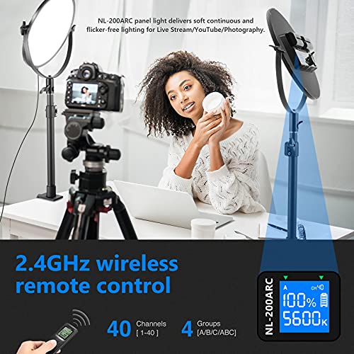 NEEWER 2 Kit di 10,6" Luce LED Rotonda da Tavolo & Stand con Morsetto-C & 2,4G Telecomando Wireless, 30W 3200-5600K Dimmerabile Bicolore CRI97+ per Giochi Streaming YouTube Videoconferenze