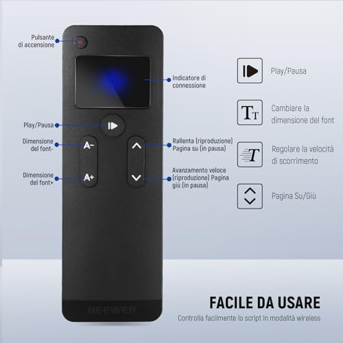 【Ampia Compatibilità】 Non solo funziona perfettamente con i teleprompter della NEEWER (X1 Pro, X10, X12, X14, X16, X17, X17 II ecc.), ma funziona perfettamente anche con qualsiasi marca di teleprompter che utilizzi. Basta associarlo al tuo dispositivo mobile nelle Impostazioni del sistema > pannello Bluetooth e sei a posto. Nota: Prima della connessione, attiva il Bluetooth e i servizi di localizzazione sul tuo dispositivo