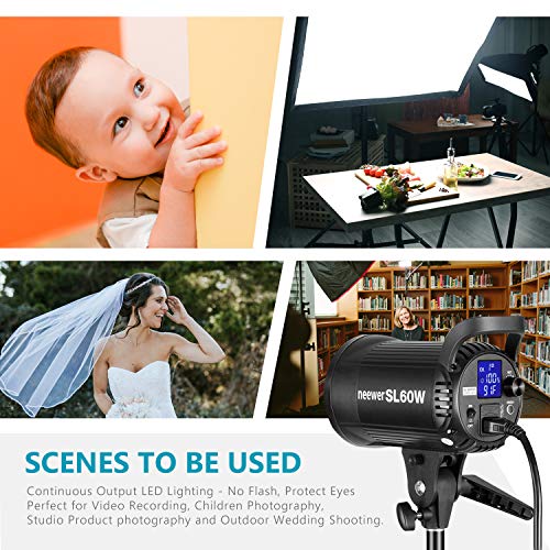 Neewer SL-60W LED Video Light Bianco 5600K, CRI 95 +, TLCI 90+, con telecomando e riflettore, illuminazione continuativa Bowens Mount per registrazione video, fotografia per bambini, ripresa esterna