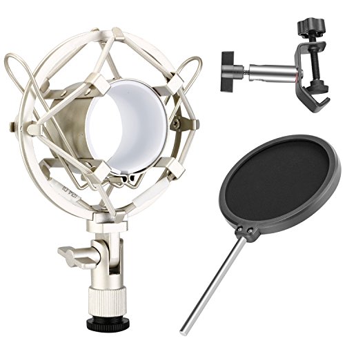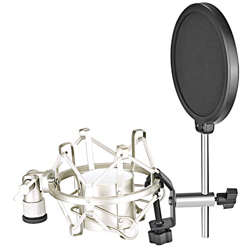 Neewer Supporto Anti-vibrazione Argento Supporto Ragno a Sospensione con Filtro Pop & Serratura per Maggior Parte di Supporti Stand per Microfono e Microfoni da 43-46mm in Diametro