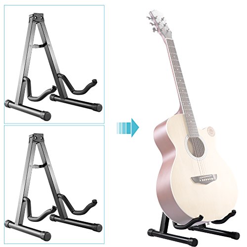 Neewer Supporto da pavimento per chitarra elettrica, in due pezzi, portatile, universale, pieghevole, telaio A, strumenti musicali stabili, base in ferro / nero