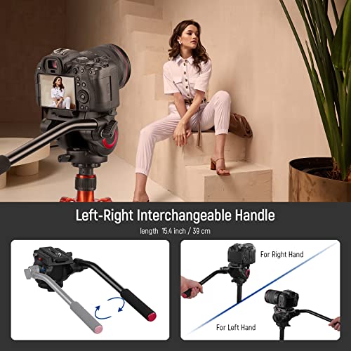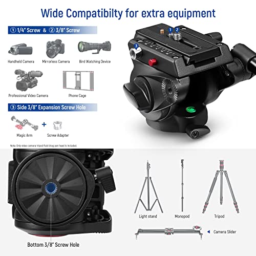NEEWER Testa fluida per treppiede video in metallo resistente con piastra QR compatibile con Manfrotto 501PL e testa inclinabile con impugnatura staccabile per treppiede per Monopiede DSLR, 6 kg