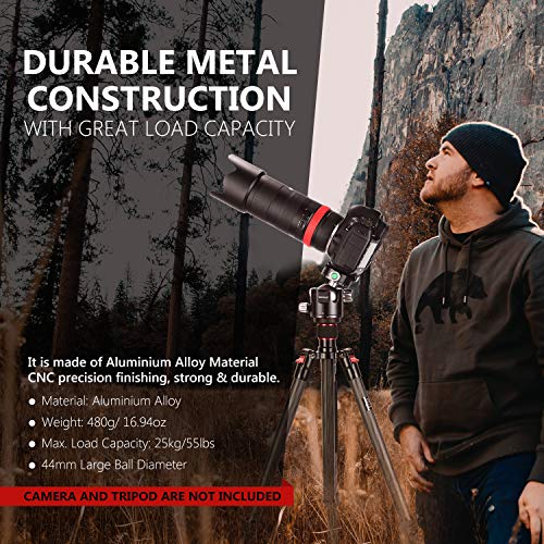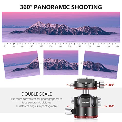 Neewer Testa a sfera a basso profilo da 44 mm, testa per treppiede panoramico con piastra a sgancio rapido a 360° e morsetto per fotocamere DSLR stativo monopiede carico massimo 25 kg