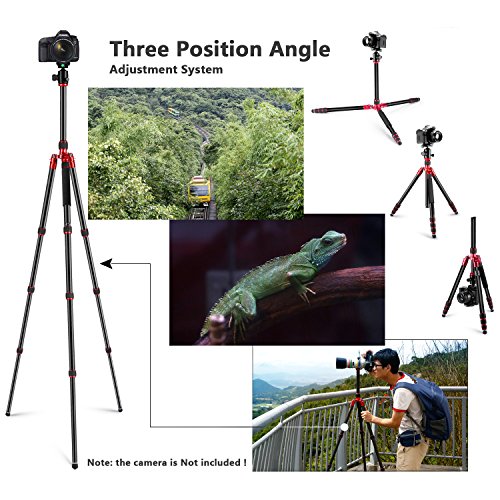 Il treppiedi può estendersi fino a 160cm in altezza e quando è tutto ritirato, è lungo di 45cm. Le gambe sono regolabili a 4 sezioni in lega di allumino. La testa a sfera orientabile a 360 gradi con la livella a bolla offre una vista panoramica. La regolazione di angolo tramite le 3 gambe provvede un'esperienza di riprese fluida e flessibile.