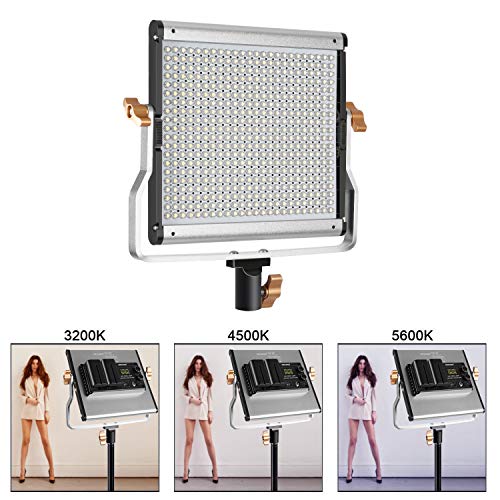 PANNELLO LUCE LED BICOLORE DIMMERABILE: Con i 240 bulbi bianchi e gli altri 240 gialli di lunga durata, questo pannello LED riesce ad illuminare con il bilanciamento del bianco variabile da tungsteno-luce naturale 3200-5600K. La staffa-U di montaggio consente di regolare l'illuminazione a seconda delle condizioni fotografiche.