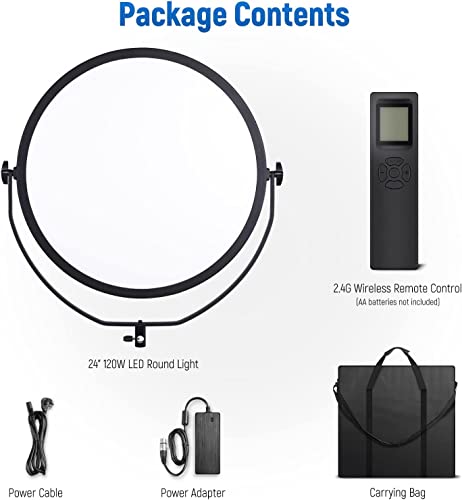 [Contenuto del Kit] 1* 24” Luce LED Rotonda da 120W, 1*2,4G Telecomando Wireless (SENZA Batteria), 1* Adattatore d'Alimentazione, 1* Cavo d'Alimentazione, 1* Bors