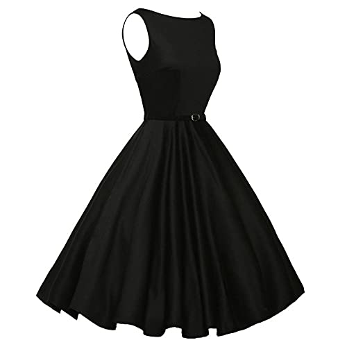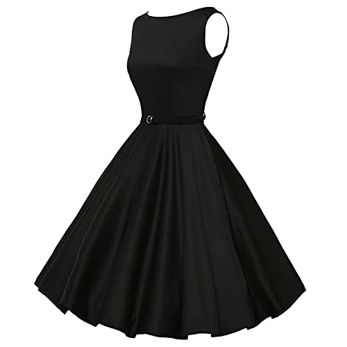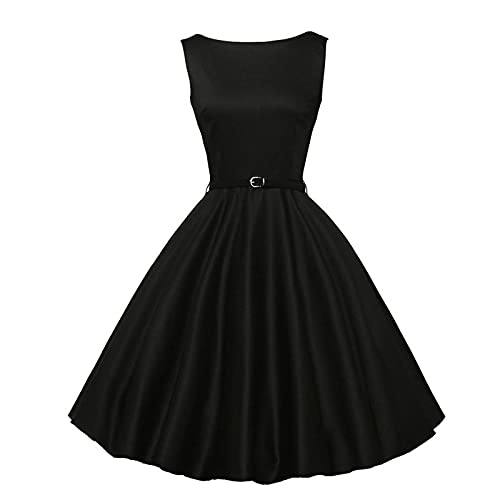 Neiabodos Abito Donna Elegante Cerimonia Curvy Estivi Abito Vintage con Scollo a V Party Classic Rockabilly Cocktail&Maniche a Sbuffo Abito di Corte con Stampa a Pois Abiti Vita Alta in Puro Colore