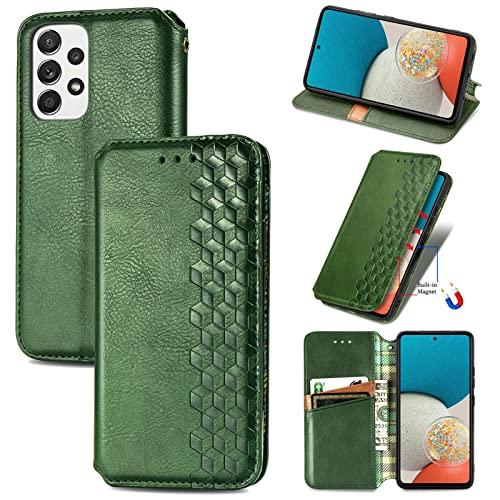 NEINEI Cover in Pelle per Samsung Galaxy A53 5G Custodia,Folio PU/TPU Portafoglio Case con Slot per Schede,Magnetica,Supporto,Design Vintage Telefono Libro Custodie-Verde