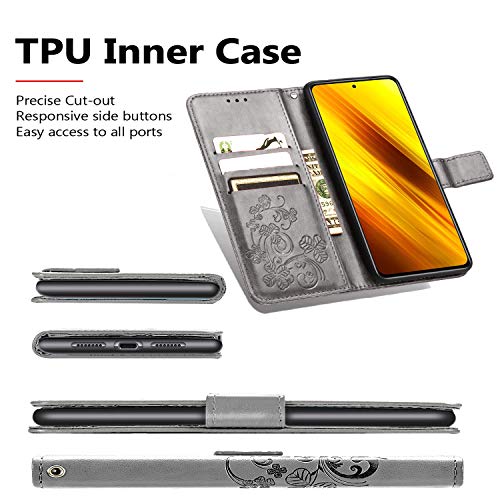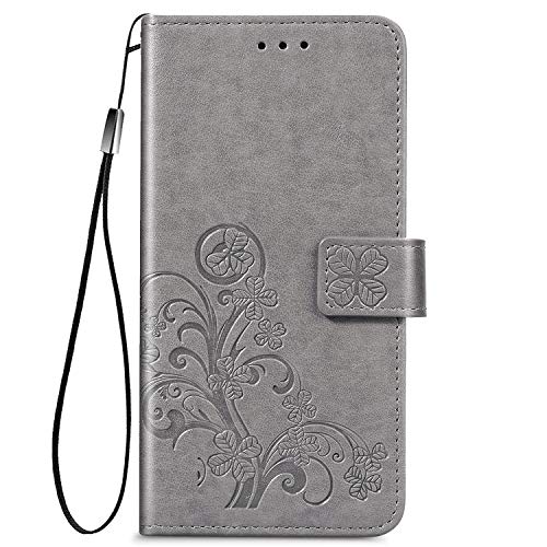 NEINEI Cover in Pelle per Xiaomi Redmi Note 10S/Redmi Note 10 4G Custodia,Folio PU/TPU Portafoglio Case con Slot per Schede,Magnetica,Supporto,3D Fortunato Trifoglio Modello,Libro Custodie-Grigio