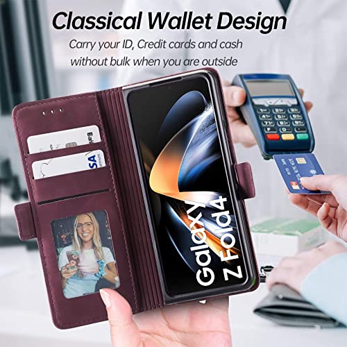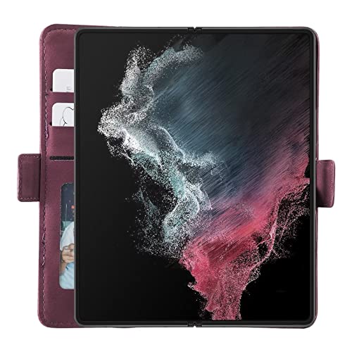 NEINEI Cover per Samsung Galaxy Z Fold4 5G Custodia,Flip Folio Portafoglio in Pelle con [Slot per Schede] [Supporto] [Magnetico],PC/PU Stile Aziendale Libro Custodie Case,Rosso