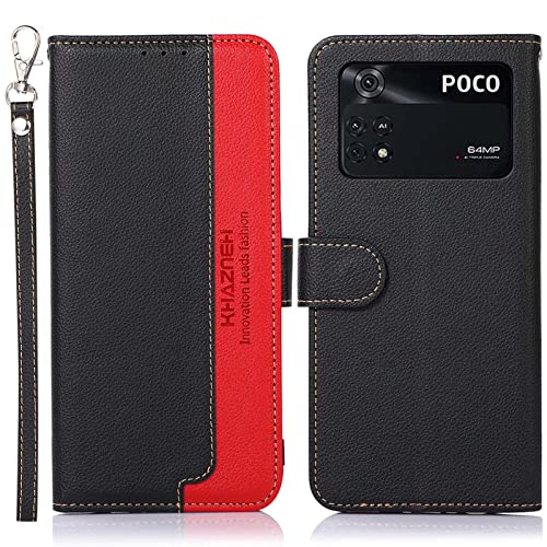 NEINEI Cover per Xiaomi Poco M4 Pro 4G,Flip Folio Portafoglio in Pelle con [Slot per Schede] [RFID Blocking],TPU/PU Design a Contrasto di Colore Libro Custodia Case,Nero